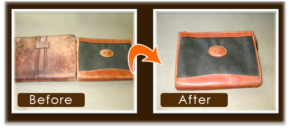 左のバックは、時間が掛かるので、右側のバックのBefore,Afterをご覧下さい。全体をクリーニングした後に、摩れた脇の部分に復元加工をしてあります。